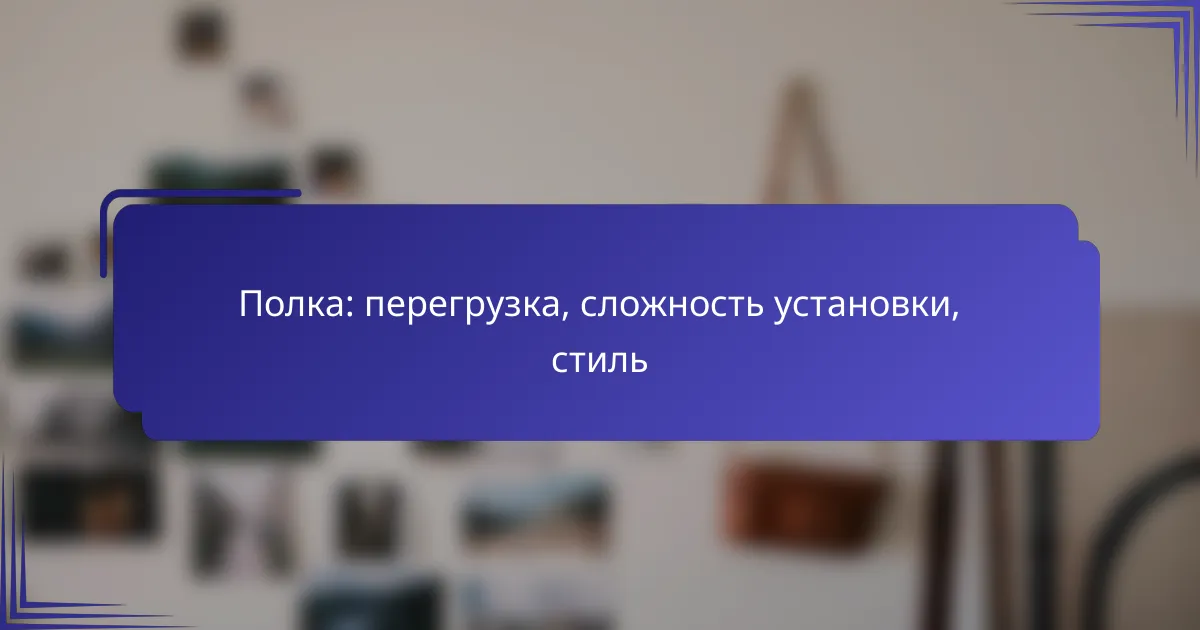 Полка является важным элементом интерьера, который не только служит для хранения, но и для демонстрации различных предметов. Однако перегрузка полки может привести к ее деформации и снижению функциональности, что ставит под угрозу безопасность. Установка полки может варьироваться по сложности, в зависимости от типа крепежа и материалов, что требует внимательного подхода к монтажу.